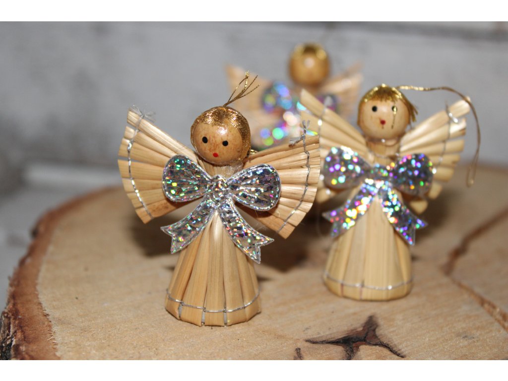 Vánoční dekorace - anděl vyrobený ze slámy zdokonalí oblíbené svátky - Vánoce.