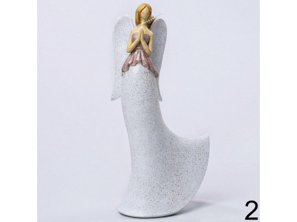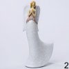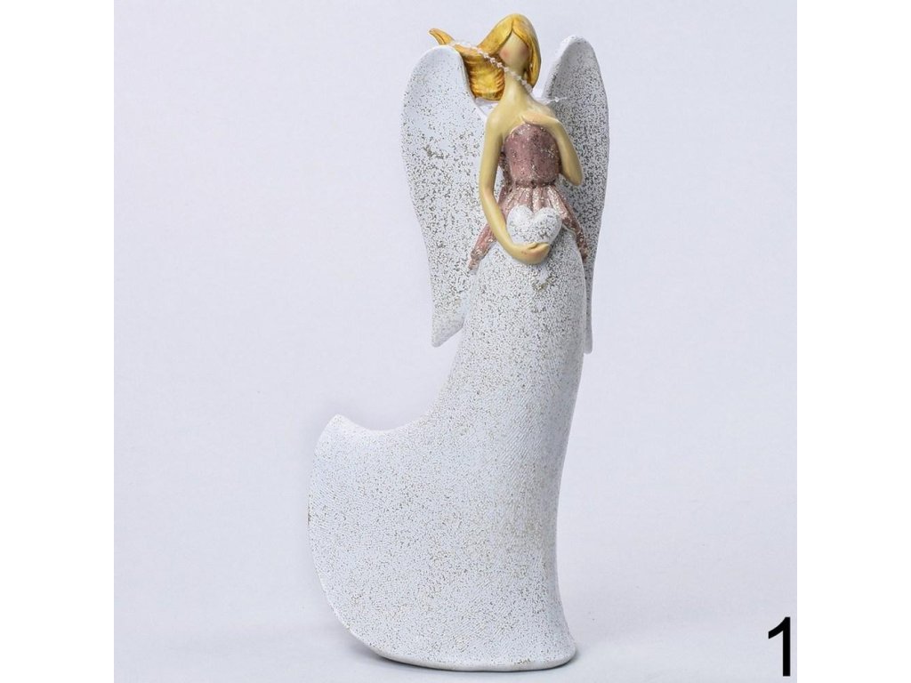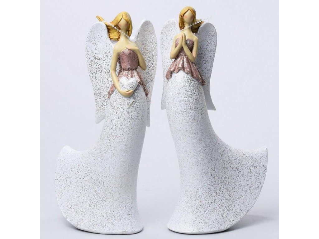 Přineste do svého prostoru nebeskou eleganci s tímto andělem v bílé barvě s glitry, který je k dostání ve dvou různých podobách. Tato soška na postavení připomíná půvabnou postavu dívky v ladných šatech, což ji činí elegantní figurkou plnící současně roli ochránce a neobyčejně krásné dekorace. S jemnými rysy a elegantním designem se stane jedním z ústředních prvků ve vašem interiéru, dodávajícím prostoru nádech harmonie a estetiky.