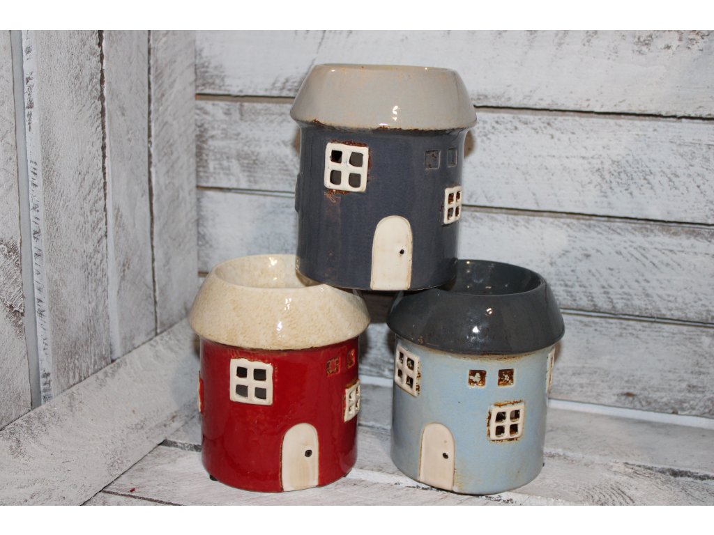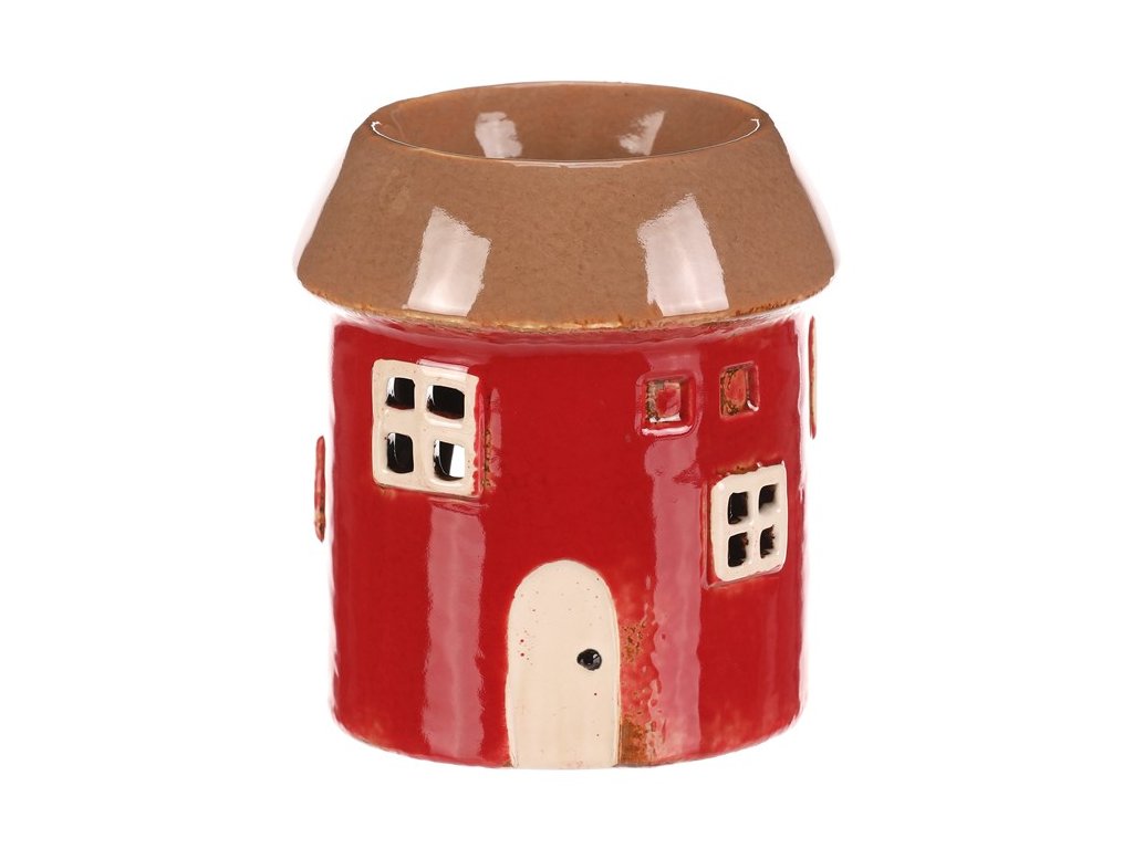 Aromalampa - tvar domku, na čajovou svíčku, červená a šedá