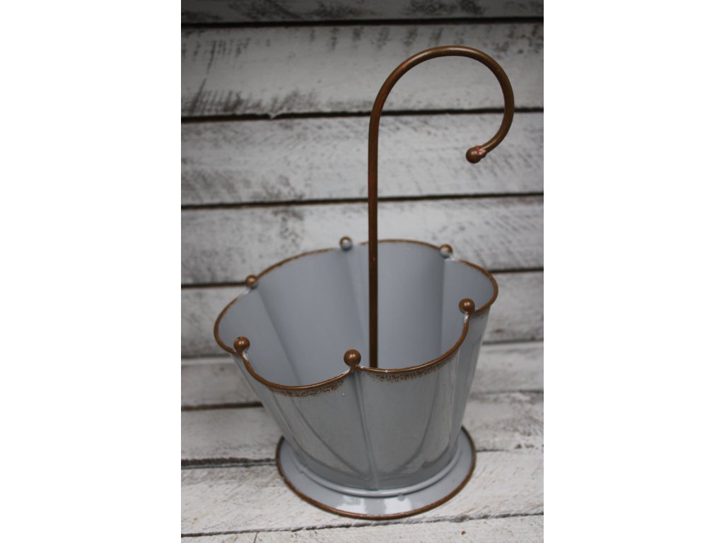Originální dekorace s nádechem romantiky a nekonečných možností využití. Kovový deštník okouzlí svým jemným designem a stane se nepřehlédnutelným prvkem vaší výzdoby. Díky pevnému kovovému provedení jej lze použít jako nádobu na živé květiny, které v něm krásně vyniknou a dodají prostoru svěžest a přirozenou eleganci.