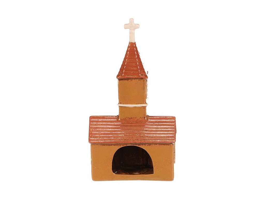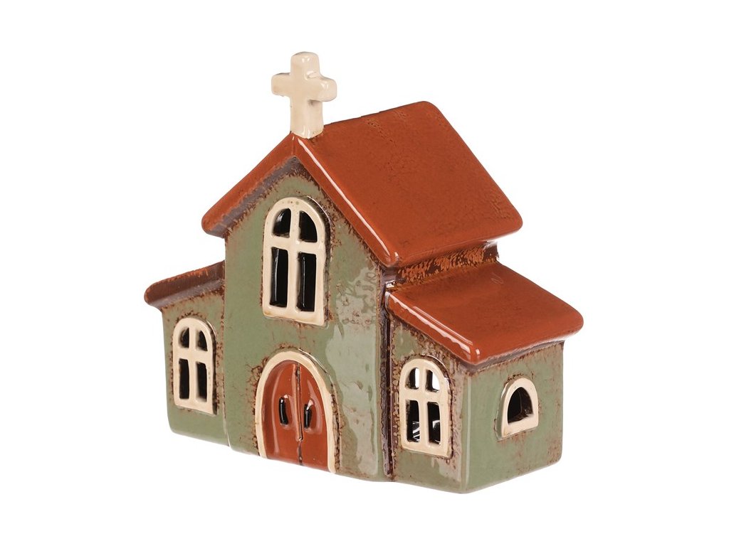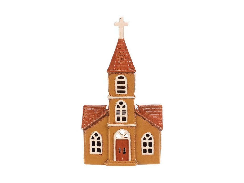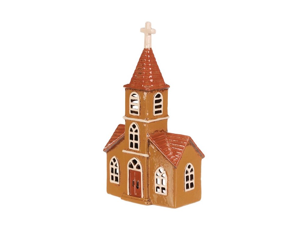 Keramický kostelík se světle hnědou fasádou a oranžovou střechou dodá vašemu domovu kouzelnou atmosféru. Má prostor pro čajovou svíčku, která po zapálení vykouzlí neodolatelný světelný efekt skrze okénka. Ideální dekorace pro dlouhé podzimní a zimní večery.