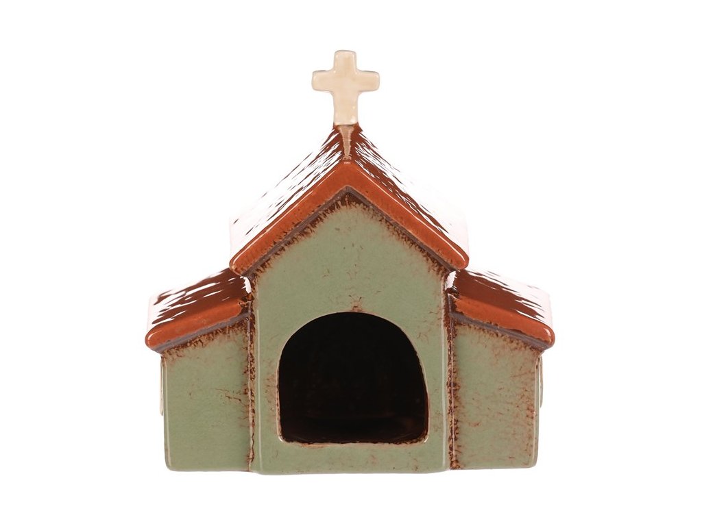 Domeček keramický - kostelík, na čajovou svíčku, hnědý