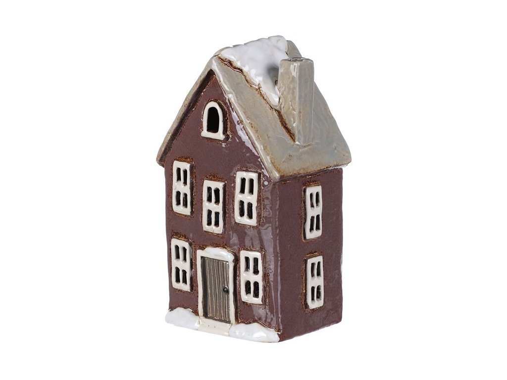 Ozdobte si váš oblíbený prostor tímto kouzelným keramickým domečkem v šedé barvě, který jakoby se k vám dostal přímo z pohádkového města. Jeho malovaný vzhled s malebnými okénky vyniká sám o sobě a ještě k tomu nabízí prostor pro vložení čajové nebo LED svíčky. Tato dekorace je vhodná pro celoroční využití, přičemž její světelný efekt dosahuje nejlepších výsledků samozřejmě za tmy. Skrze okénka proniknou do vašeho prostoru neodolatelné světelné paprsky, které v něm navodí kouzelnou atmosféru.