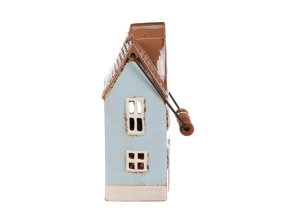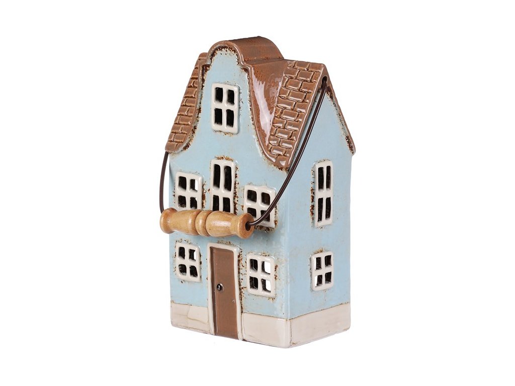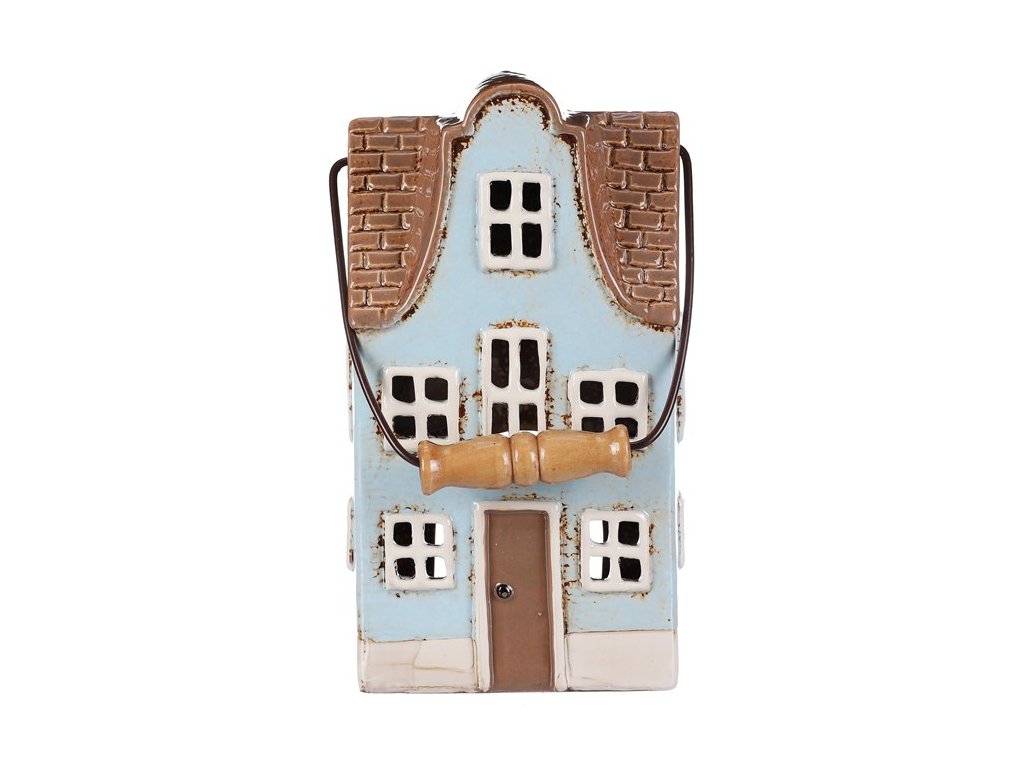 Ozdobte si váš oblíbený prostor tímto kouzelným keramickým domečkem ve světle modré barvě, který jakoby se k vám dostal přímo z pohádkového města. Jeho malovaný vzhled vyniká sám o sobě a při bližším pohledu nabízí prostor pro vložení čajové nebo LED svíčky. Tato dekorace je vhodná pro celoroční využití, přičemž její světelný efekt dosahuje nejlepších výsledků samozřejmě za tmy. Skrze okénka proniknou do vašeho prostoru neodolatelné světelné paprsky, které v něm navodí kouzelnou atmosféru.