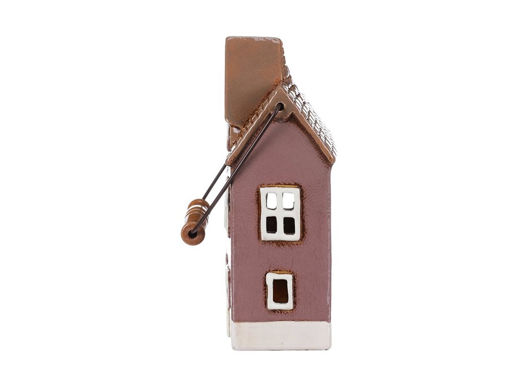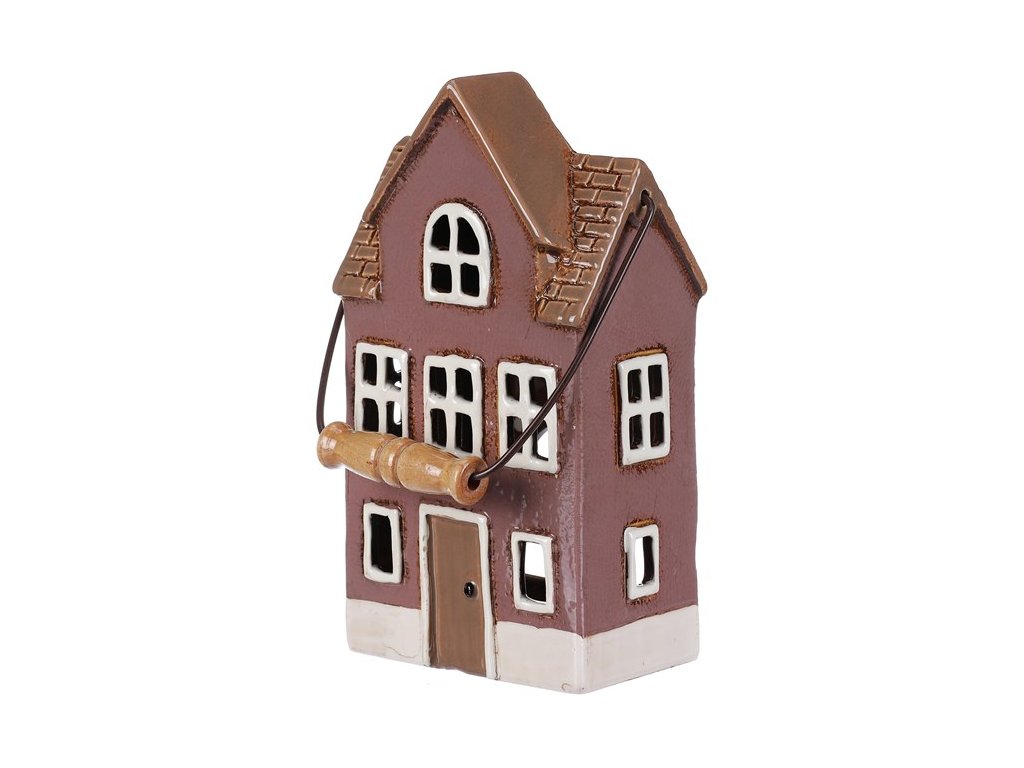 Domeček keramický - na čajovou svíčku, světle modrý, fialový a hnědý