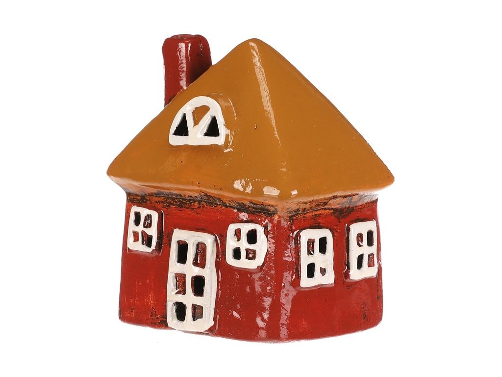 Tento malebný keramický domeček vytvoří kouzelnou atmosféru díky svému zpracování i zabudovanému LED osvětlení uvnitř. Červené stěny, bílá okna a oranžovo-okrová střecha dělají z této dekorace krásný doplněk pro podzimní i zimní večery. Ideální pro vytvoření hřejivého koutku ve vašem domově s možností vytvoření neodolatelného světelného efektu.
