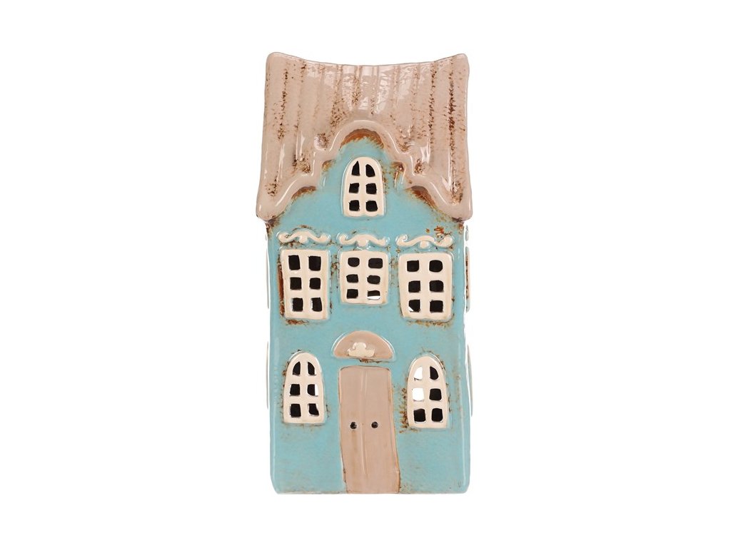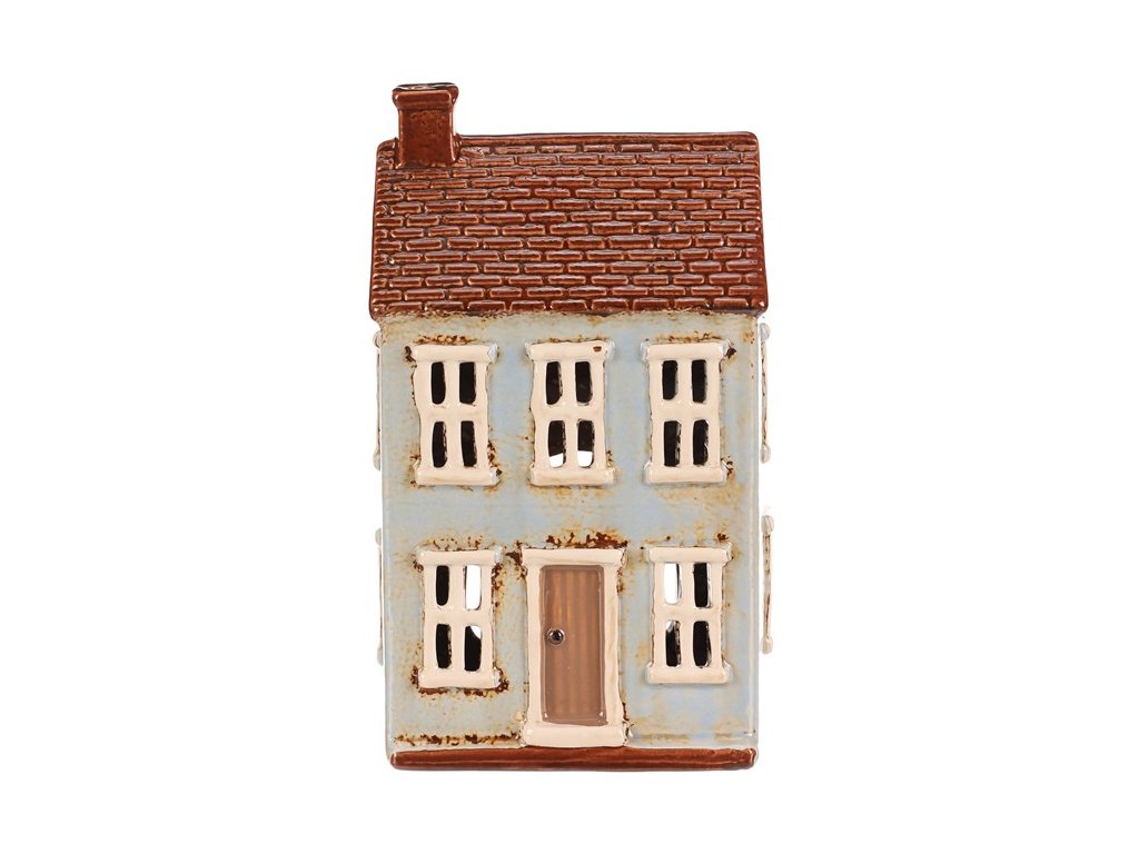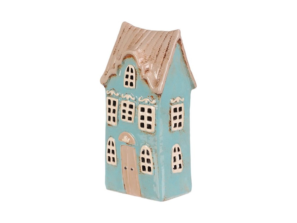 Keramický patrový domeček ve světle modrém odstínu, bude perfektní dekorací pro vánoční období. Uvnitř má prostor pro vložení čajové svíčky. Po jejím rozsvícení se rozzáří světlo skrze otvory v okénkách čímž navodíte neodolatelnou sváteční atmosféru.