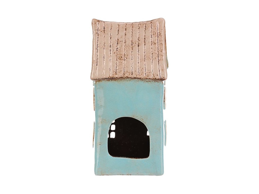Domečky keramické - patrové, na čajovou svíčku, sv. modrý