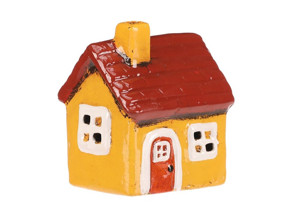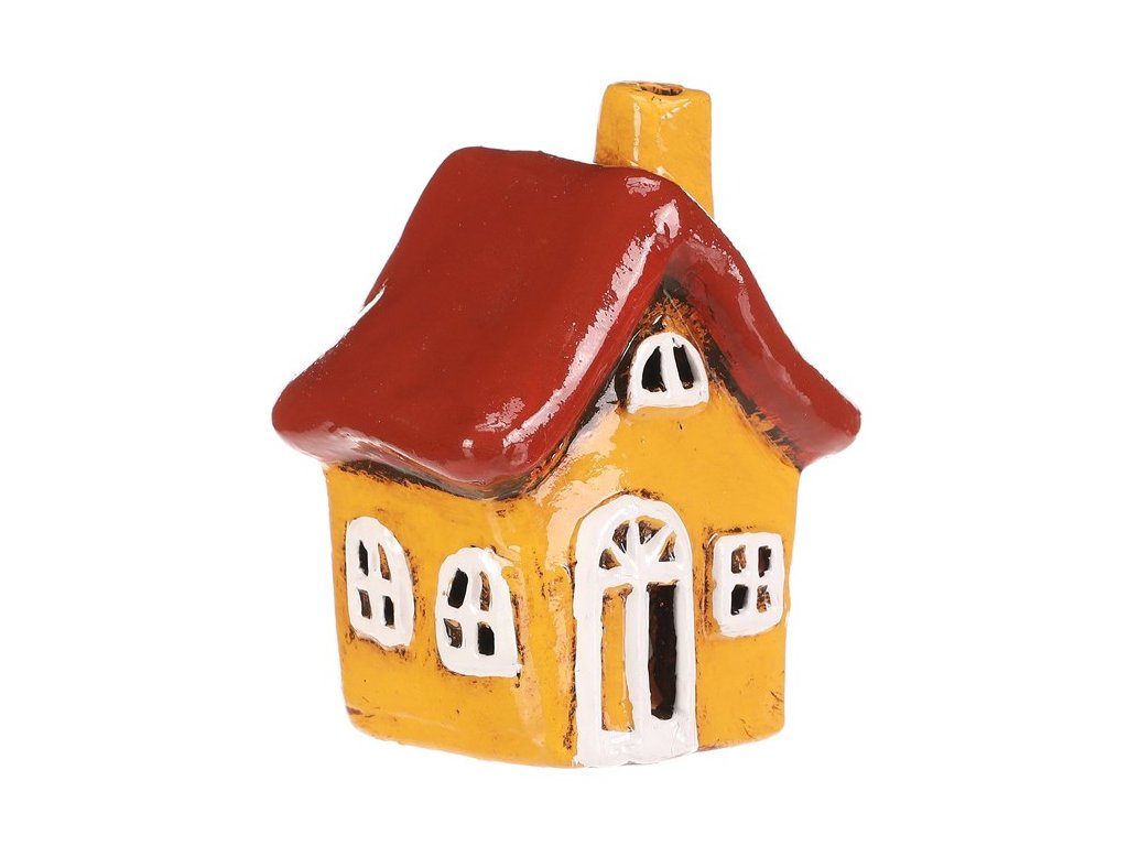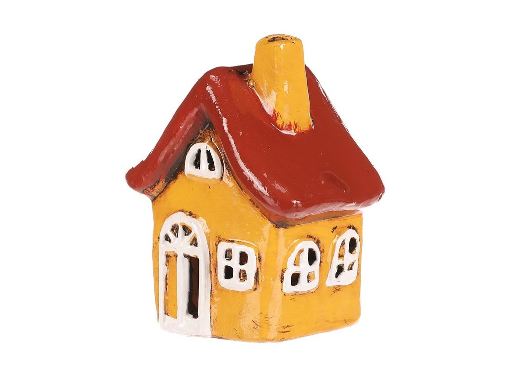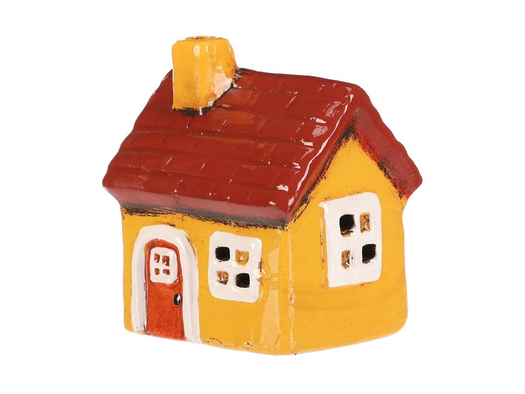 Keramický domek se žlutými stěnami, bílými okny a červenou střechou rozzáří váš prostor díky jemnému LED osvětlení. Jeho jemné zpracování e teplé tóny vnáší do interiéru hřejivou atmosféru. Díky svému zbarvení bude perfektní ozdobou zejména pro podzimní období.