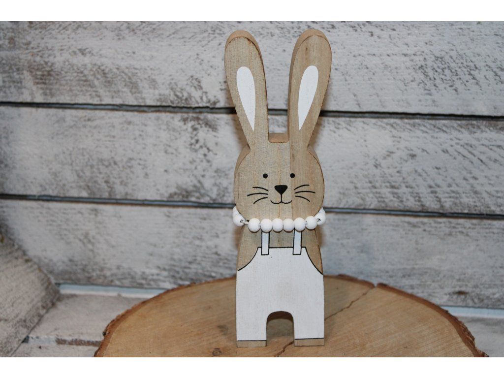 Dřevěný králík s bílými korálky je stylová a jemná dekorace, která krásně doplní jarní i velikonoční výzdobu. Kombinace přírodního dřeva a bílých korálků působí elegantně a zároveň velmi útulně.