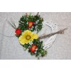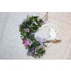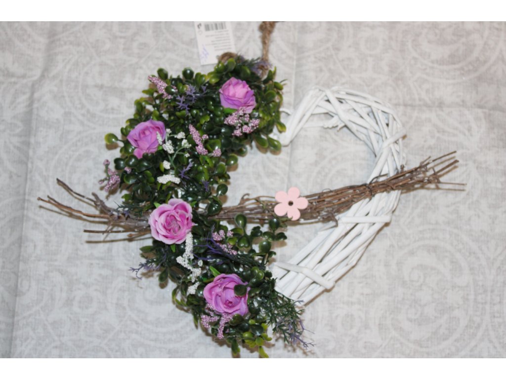Krásná přírodní dekorace ve tvaru srdce z proutí doladěná do barevných tónů potěší milovníky jemných, romantických detailů. Srdce je zdobené kvalitními umělými květy, které vypadají jako živé a zůstávají krásné po dlouhou dobu.