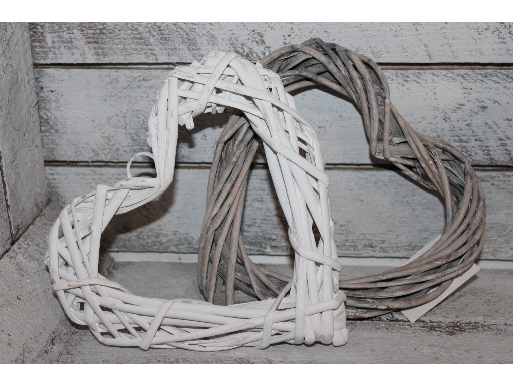 Proutěné srdce k dalšímu tvoření – šedé a bílé 15 cm