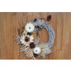 Elegantní proutěný věnec v jemné kombinaci bílé a šedé barvy působí decentně a vkusně. Díky průměru 20 cm korpusu + dekorace a celková velikost je 25 cm je ideální k zavěšení na dveře, stěnu či jako základna pro svíčky a další dekorace na stůl. Věnec je vyroben z kvalitního proutí a zdobený v neutrálních barvách, které se hodí do moderního i rustikálního interiéru.