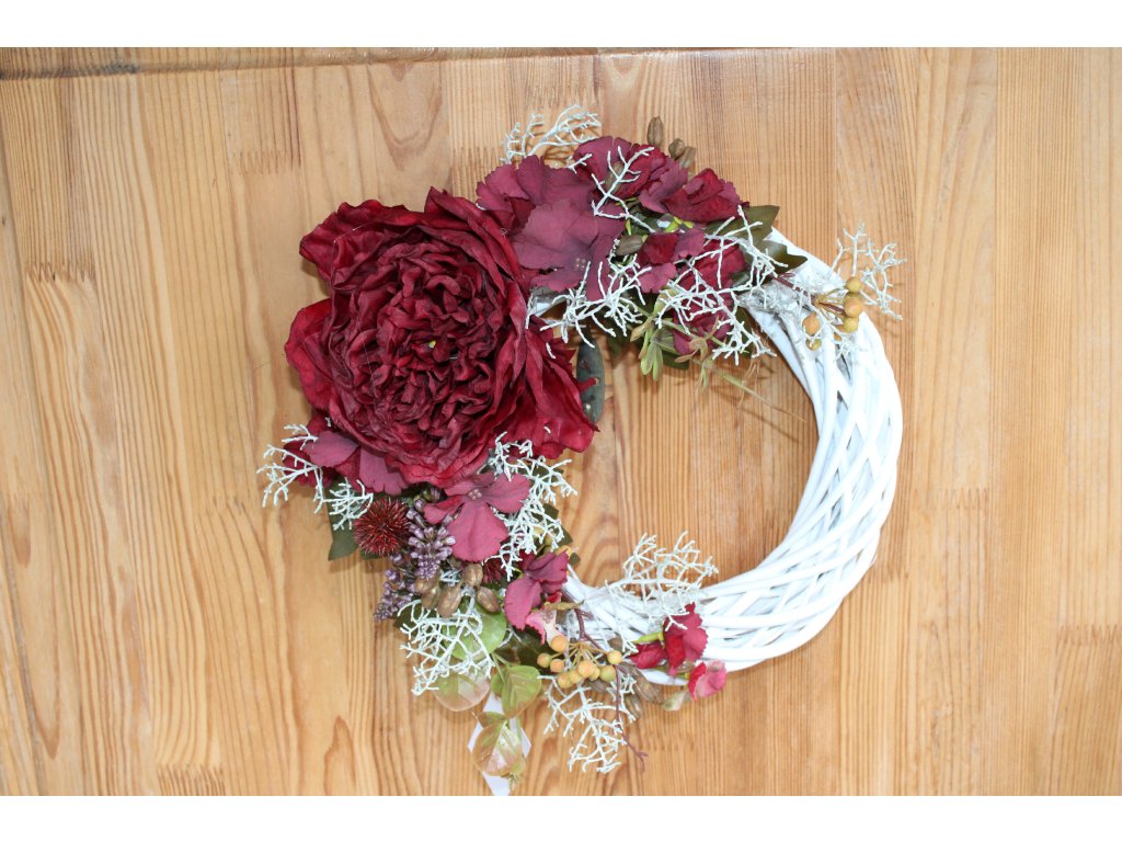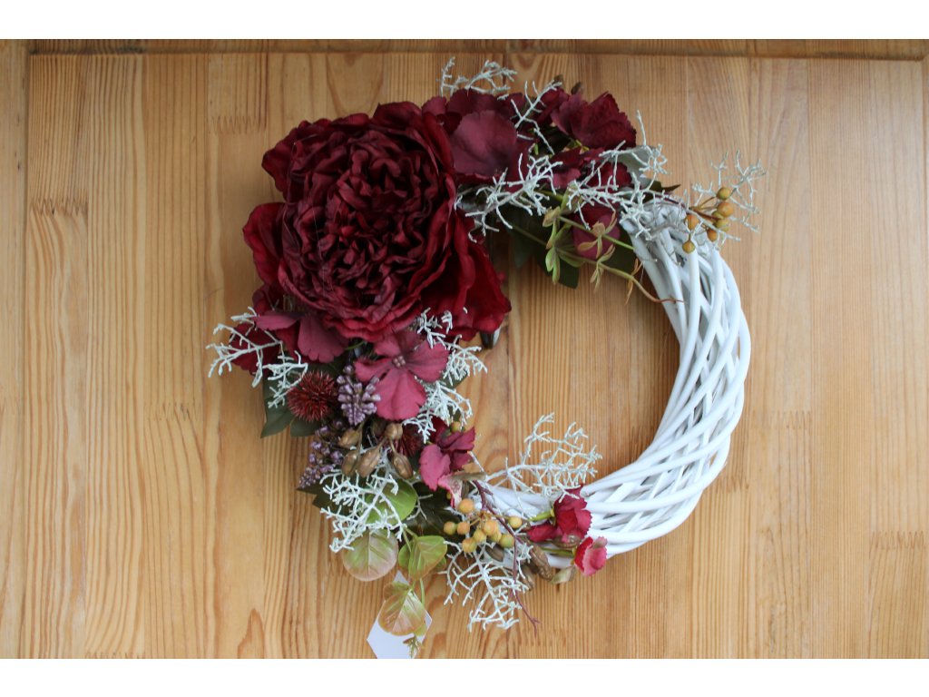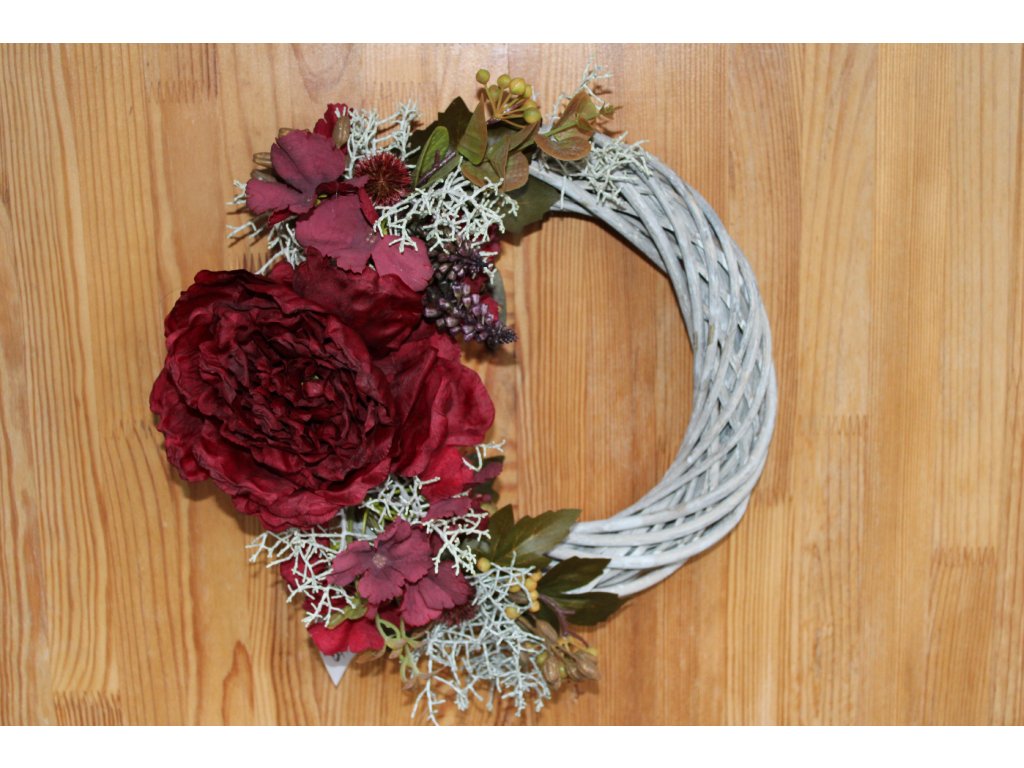 Proutěný věnec – romantická celoroční dekorace v barvě bordó