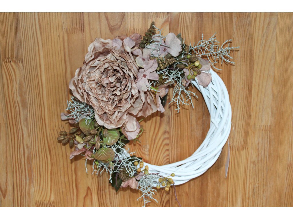 Něžný proutěný věnec v bílé či šedé barvě je jako malý kousek pohádky, který vnese do vašeho domova kouzlo po celý rok. V jeho květinovém ladění se prolínají tóny starorůžové, růžové, bordó i jemně oranžové – barvy, které působí hřejivě a romanticky v každém ročním období.
