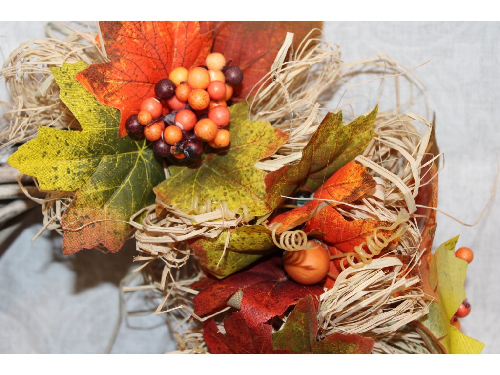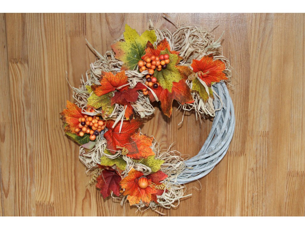 Proutěný věnec s podzimním listím a přírodním lýkem, průměr 20–35 cm