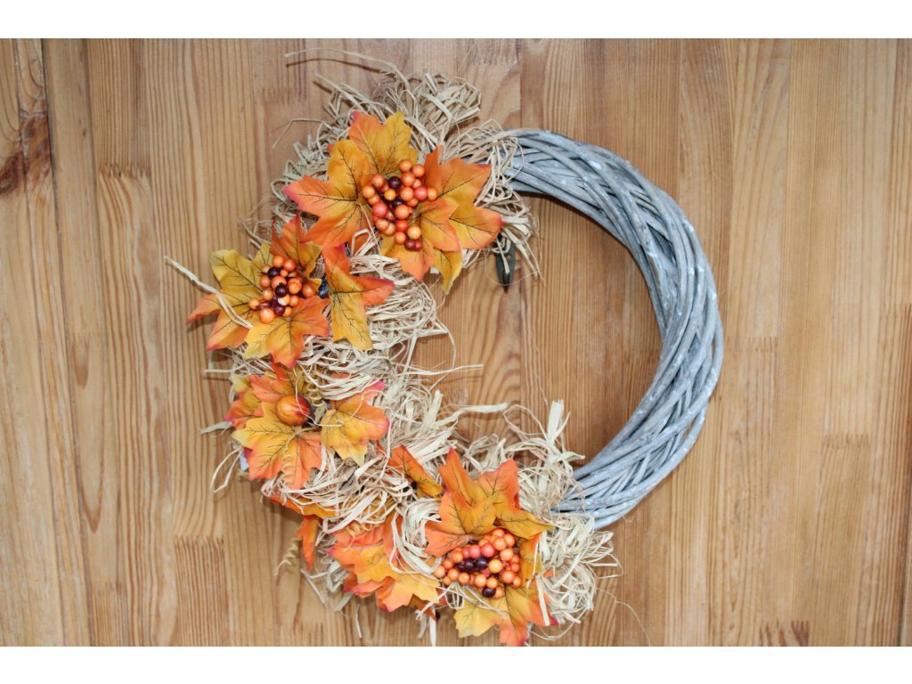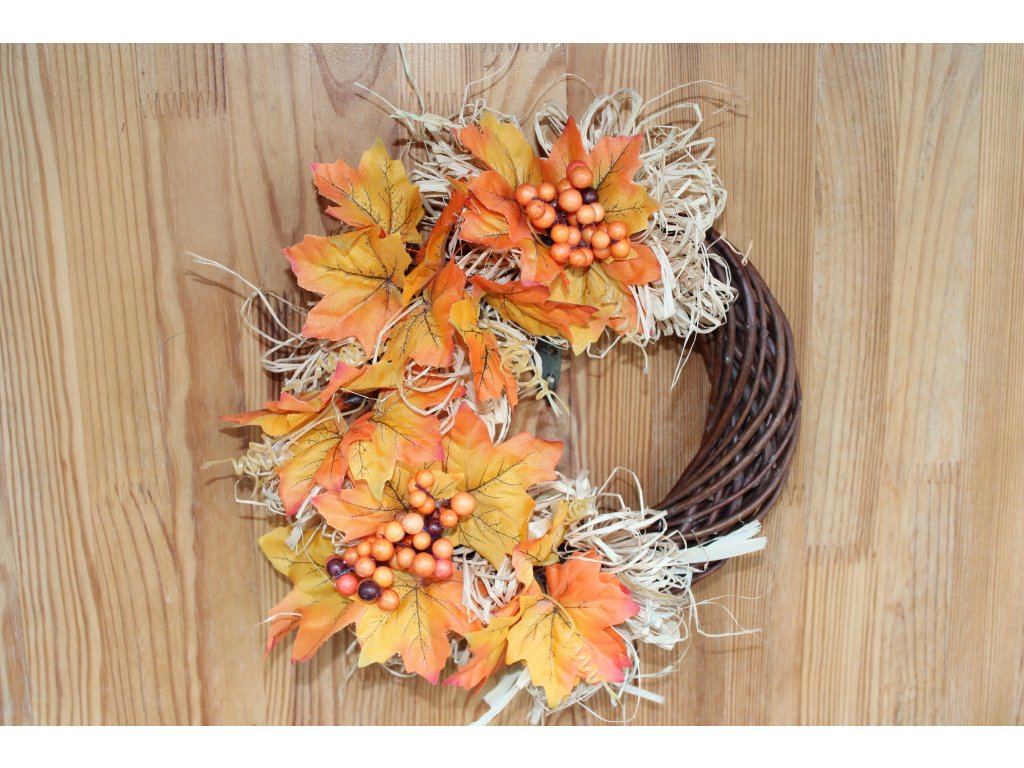 Proutěný věnec s barevným podzimním listím a přírodním lýkem je krásnou dekorací, která vnese do vašeho domova hřejivou atmosféru podzimu. Kombinace přírodního proutí a pestrých listů v odstínech oranžové, červené a zlaté působí autenticky a útulně.
