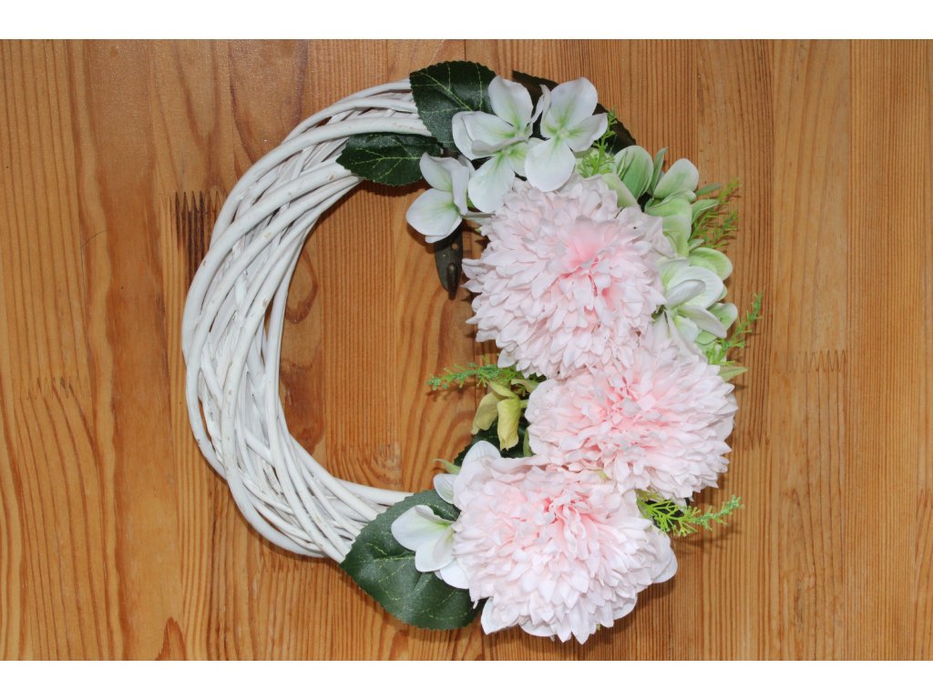 Něžná dekorace, která vnese do vašeho domova klid a romantickou atmosféru. Tento proutěný věnec je vytvořen z přírodního základu, který působí lehce a vzdušně, a je ozdobený umělými květy laděnými do harmonické kompozice.