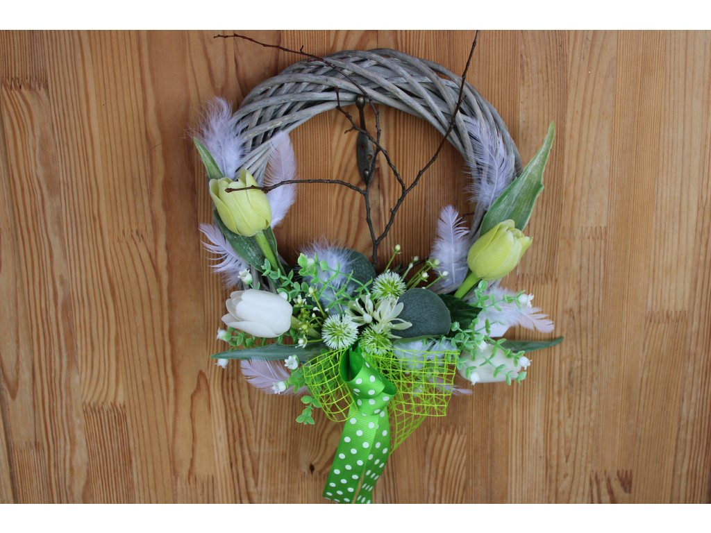 Romantický jarní věnec, který vnese do vašeho domova něhu, lehkost a svěží atmosféru probouzející se přírody. Dominantou jsou něžné tulipány v jemných tónech, které symbolizují lásku, nový začátek a radost. Celý věnec je doplněn o lehounká peříčka, jež mu dodávají vzdušnost a jemný, snový nádech.
