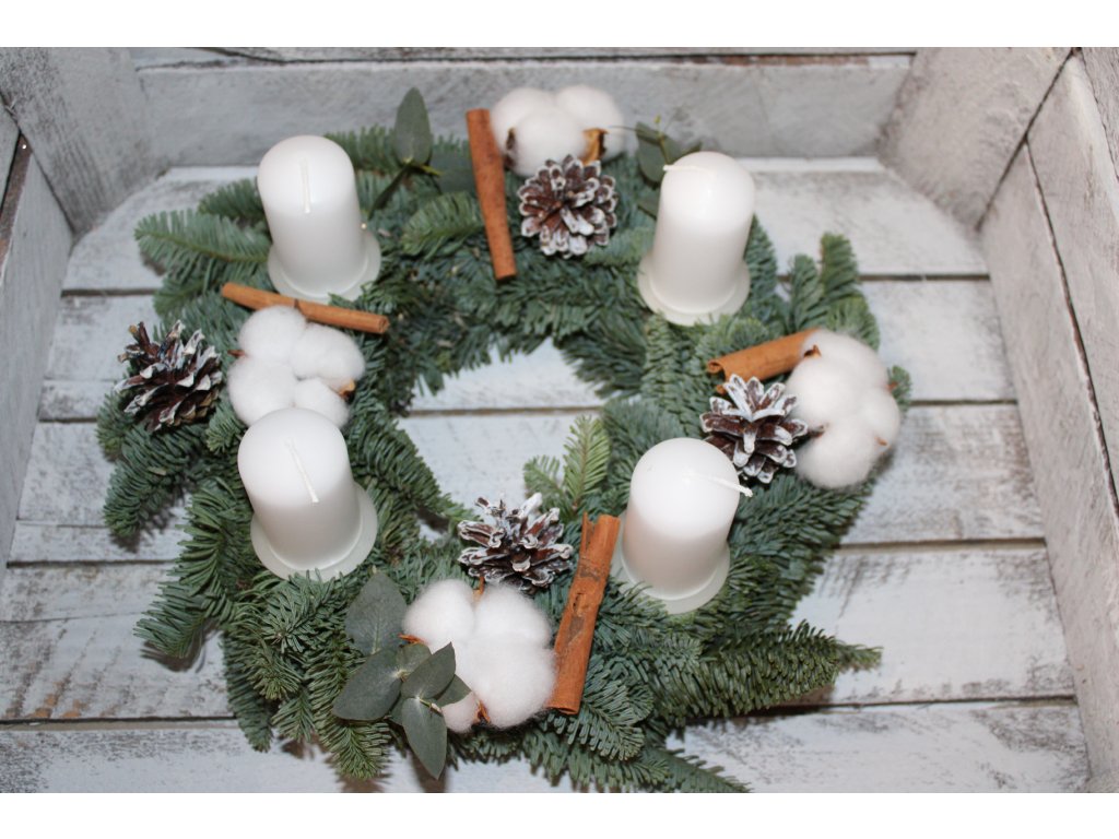 Nabízím vám možnost vyrobit si vlastní adventní věnec podle svých představ. Já vám k tomu nabízím tuto sadu která obsahuje: