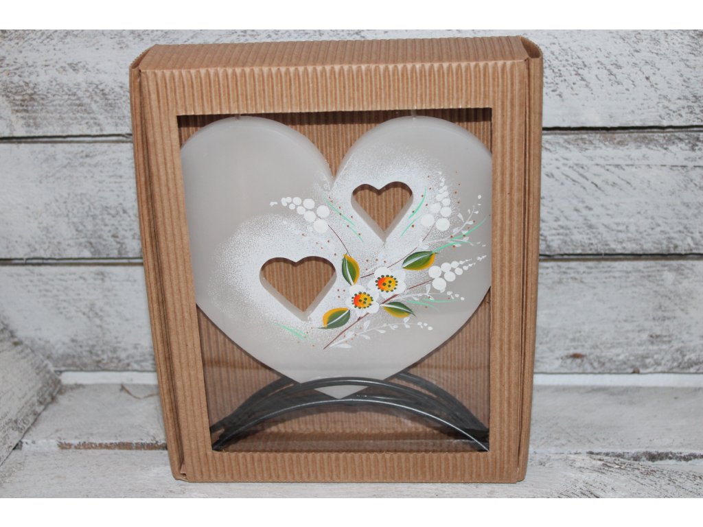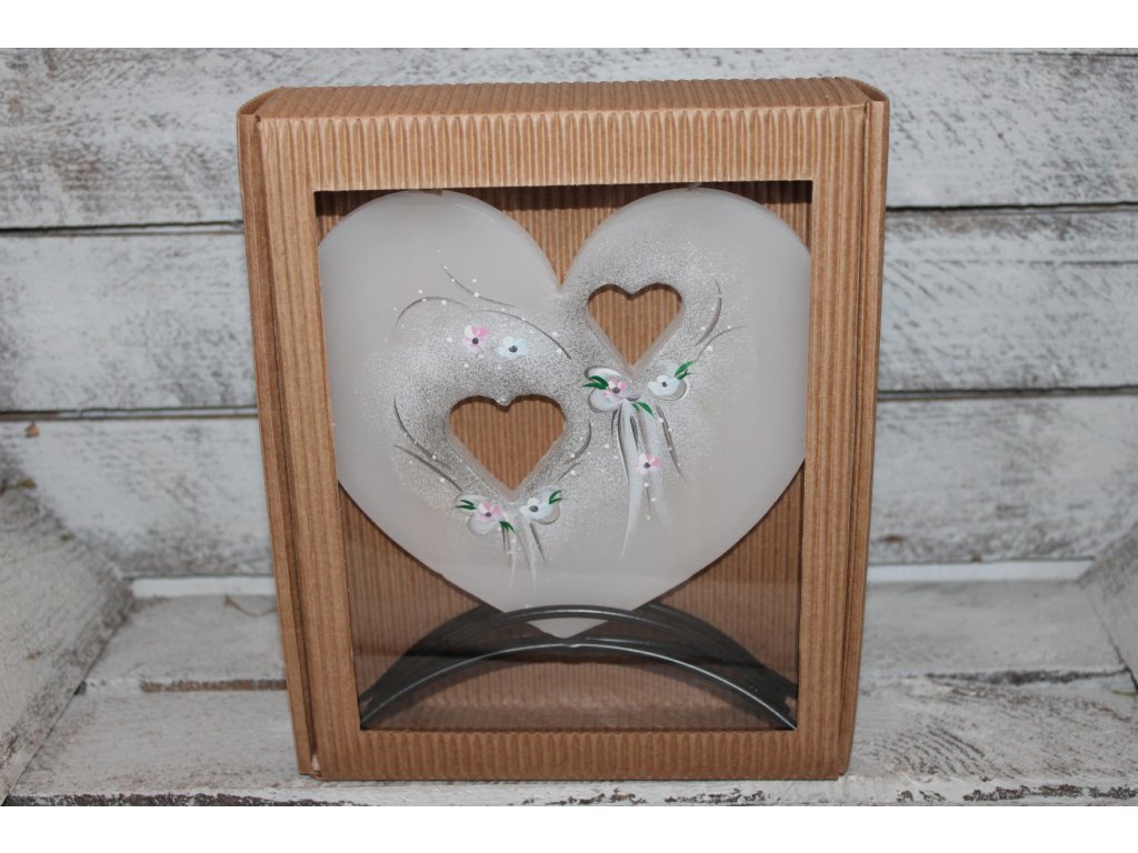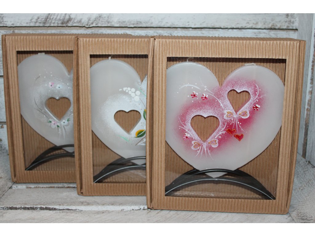 Romantická svíčka zdobená jemnými srdíčky je krásnou dekorací na svatbu i milým dárkem pro novomanžele. Díky svému něžnému vzhledu se skvěle hodí na svatební stůl, k výzdobě slavnostní tabule nebo jako památka na tento výjimečný den.