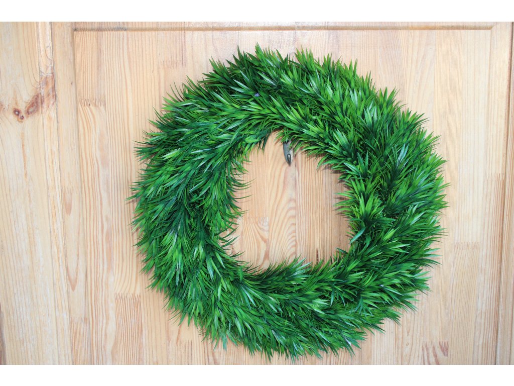 Věnec vytvořený ze svazků trávy, velmi věrných své přírodní předloze, je ideálním doplňkem do květinových kompozic a aranží. Každá větévka je bohatě opatřena drobnými lístky, které tvarem i barvou dobře kontrastují s květy nebo ostatní zelení. Má krásně sytou zelenou barvu.