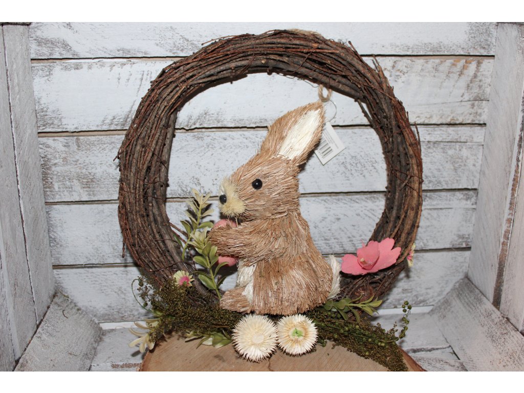 Něžný proutěný věnec s králíčkem je krásnou jarní dekorací, která vnese do domova svěžest a radost. Přírodní proutěný základ je doplněn jemnými jarními dekoracemi a roztomilým králíčkem, který dodává věnci hravý, ale stále elegantní vzhled.