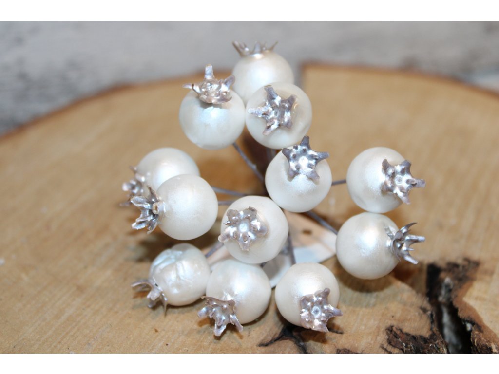 Větvička s bobulemi - bílá perleťová