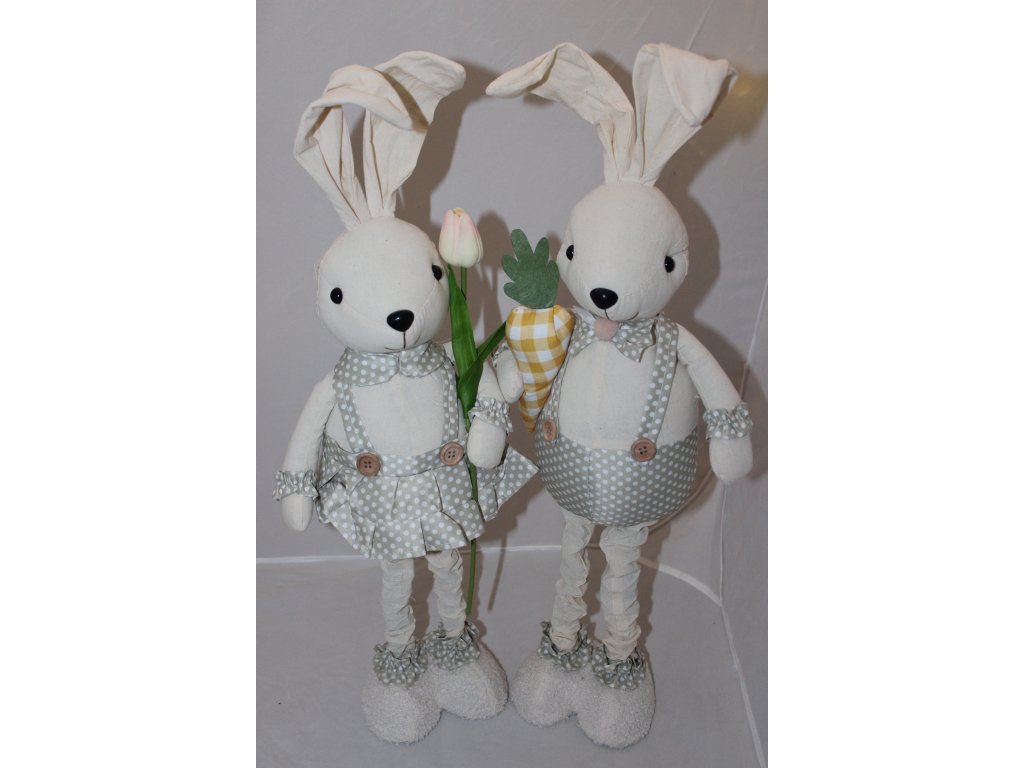 Okouzlující zajíc a zaječice s vysouvacími nohami si získají srdce na první pohled. Díky nastavitelným nohám lze jejich výšku snadno upravit – od 45 cm až do 76 cm včetně oušek, takže se krásně přizpůsobí každému prostoru.