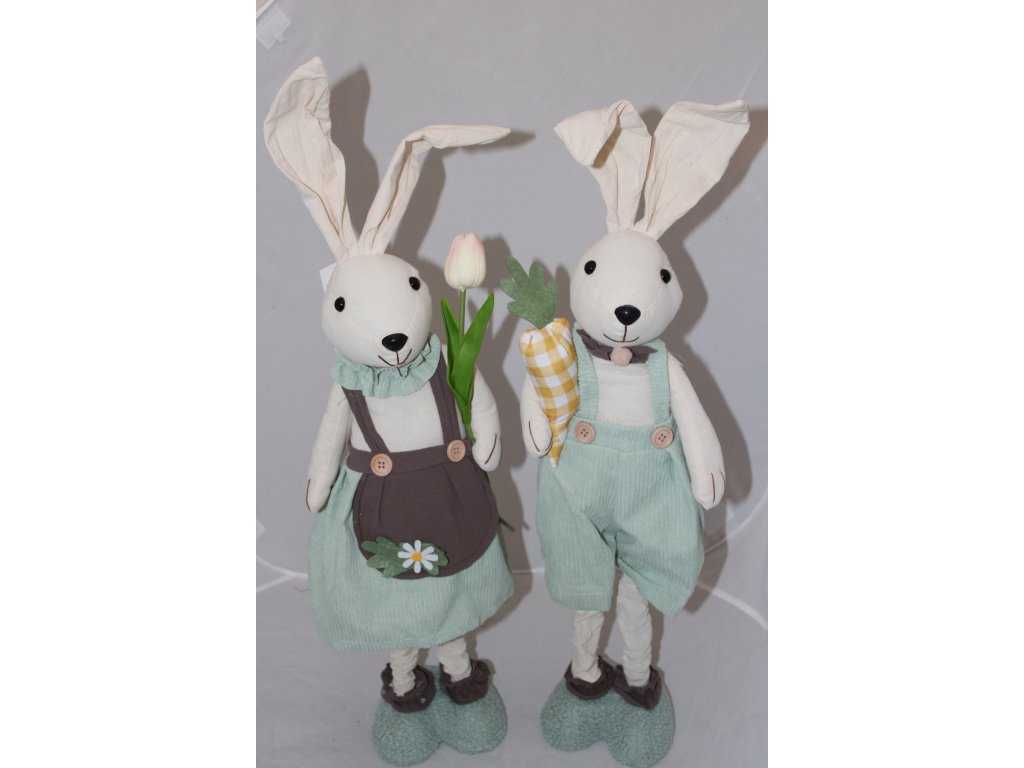 Okouzlující zajíc a zaječice s vysouvacími nohami si získají srdce na první pohled. Díky nastavitelným nohám lze jejich výšku snadno upravit – od 45 cm až do 76 cm včetně oušek, takže se krásně přizpůsobí každému prostoru.