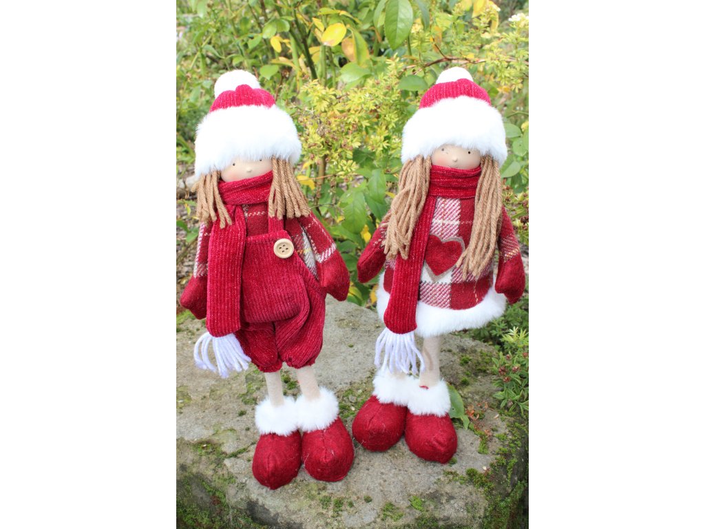 Přineste do svého domova nádech vánočního kouzla a jemnosti s látkovými dětmi v teplém červeném oblečku. Jde o roztomilé děti s jemným úsměvem, které budou ideální sváteční nebo čistě zimní dekorací. S teplou čepičkou a rukavičkami jsou obě připraveny na zimu, a díky tomu působí přívětivě a hřejivě. Rozměr : 35 x 15 x 10 cm |